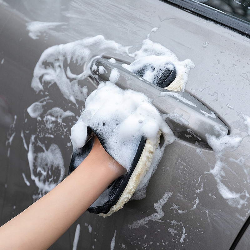 Губку можно мыть, в ней есть отверстие для руки, что делает ее очень удобной в использовании и не испачкается при мытье автомобиля.