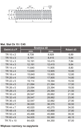 У нас есть трапециеидальные болты с длиной до 6 м по запросу