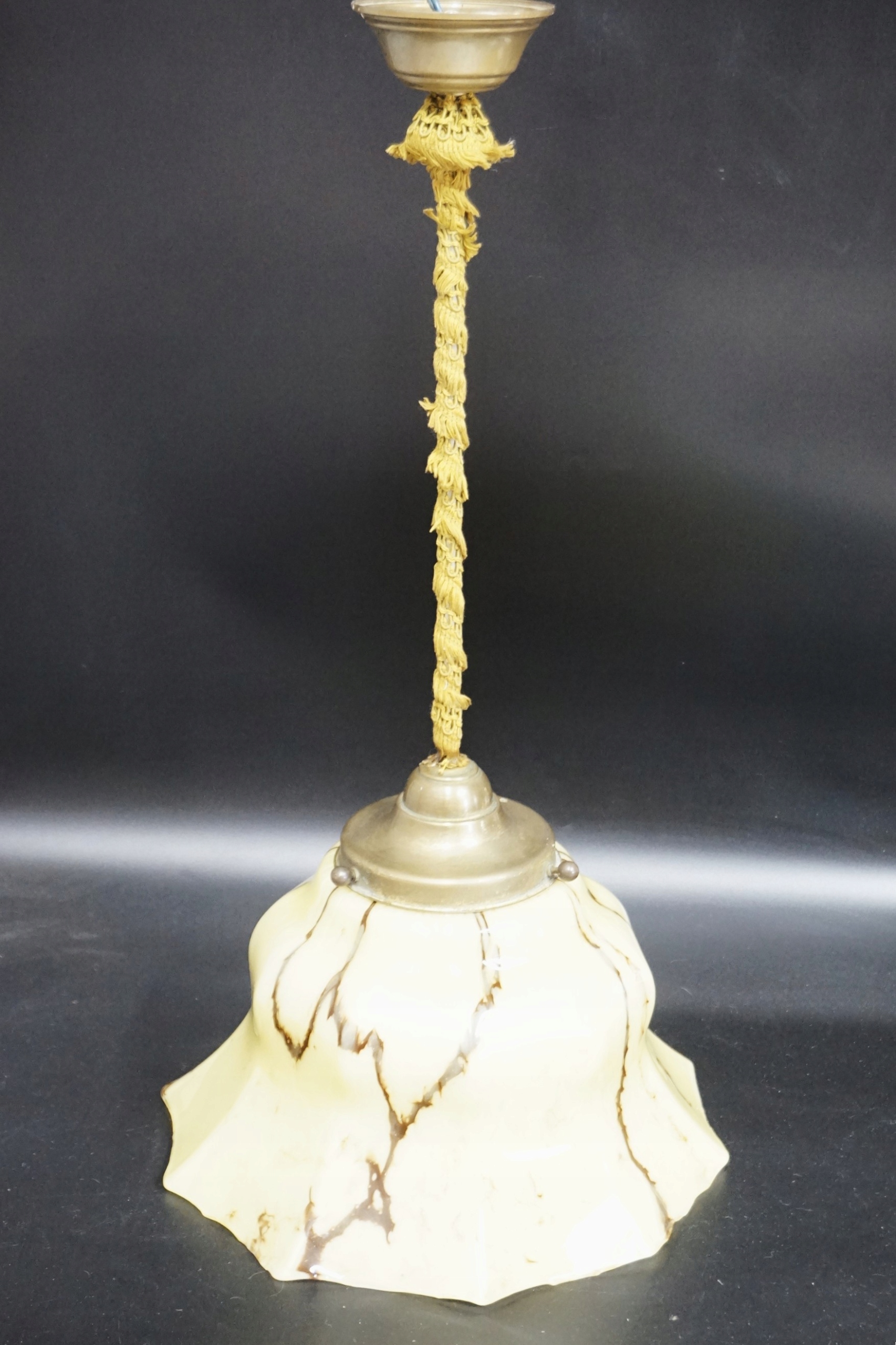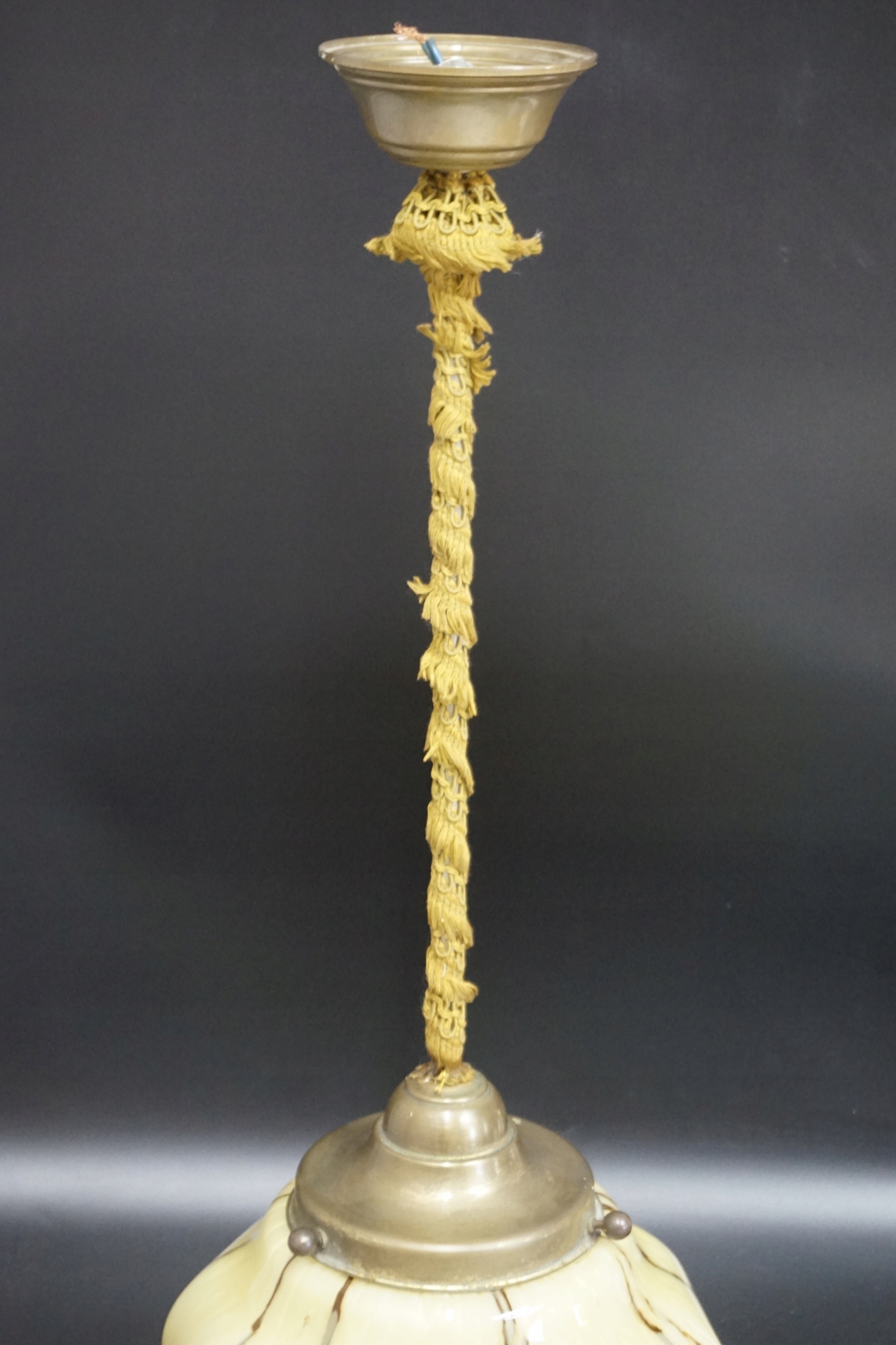 Арт -деко -лампа на латунном сиденье, завернутой в ткань