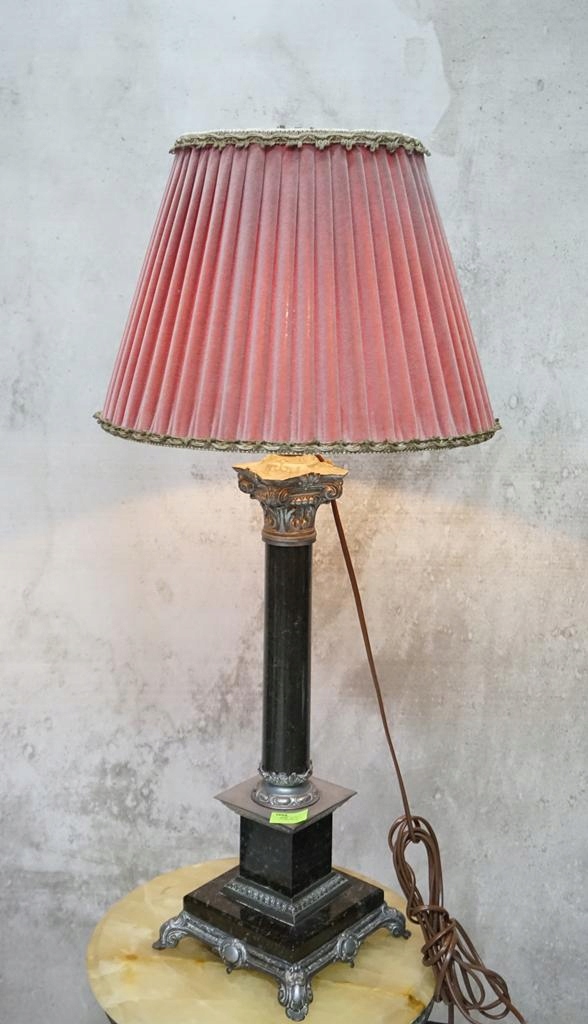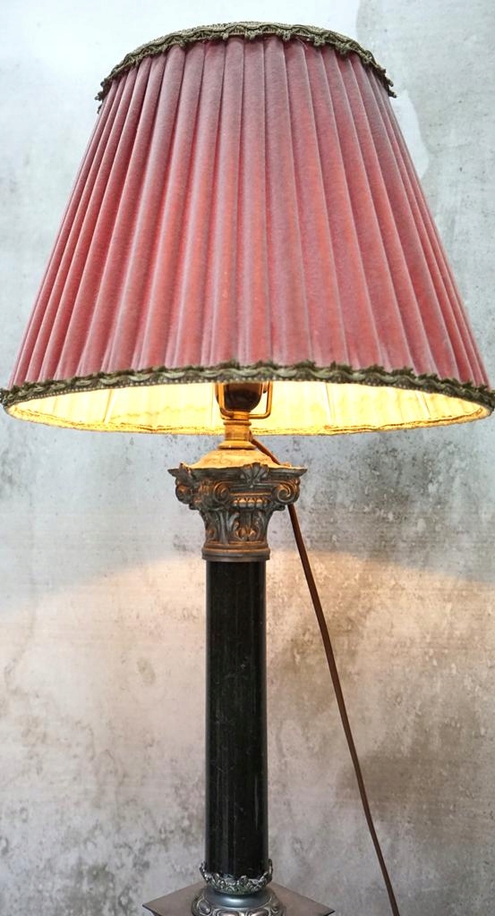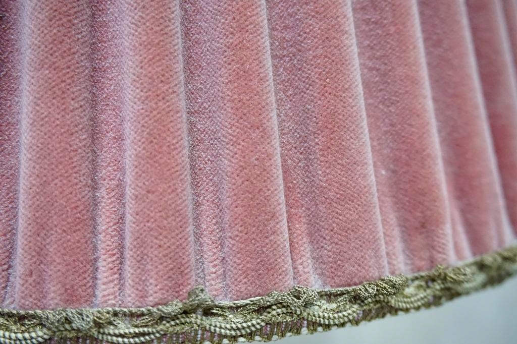 Лампа имеет розовый порошковый абажур.