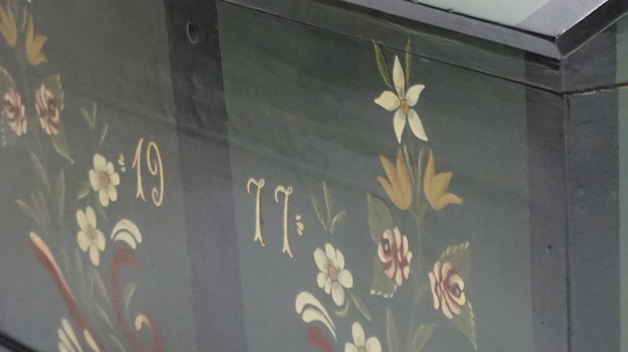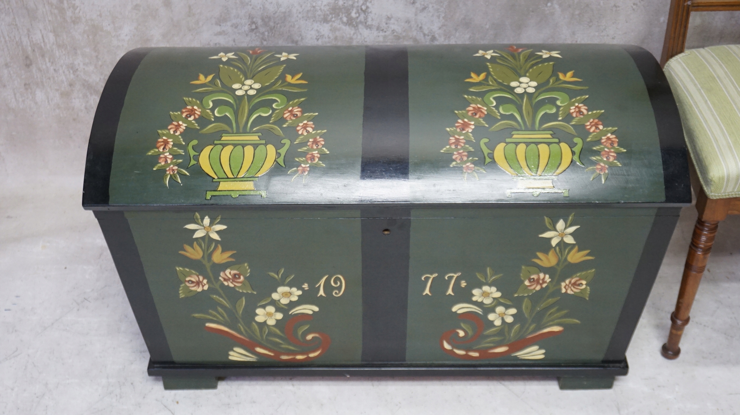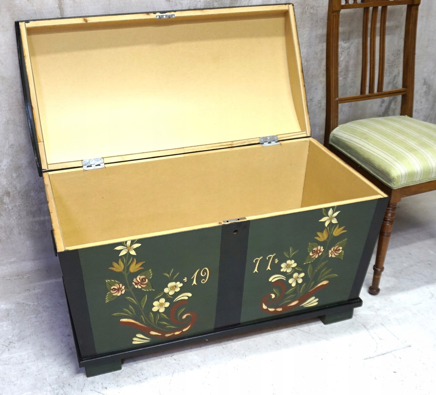 Коробка для дерева - зеленый с окрашенными народными мотивами и датой 1977 г.