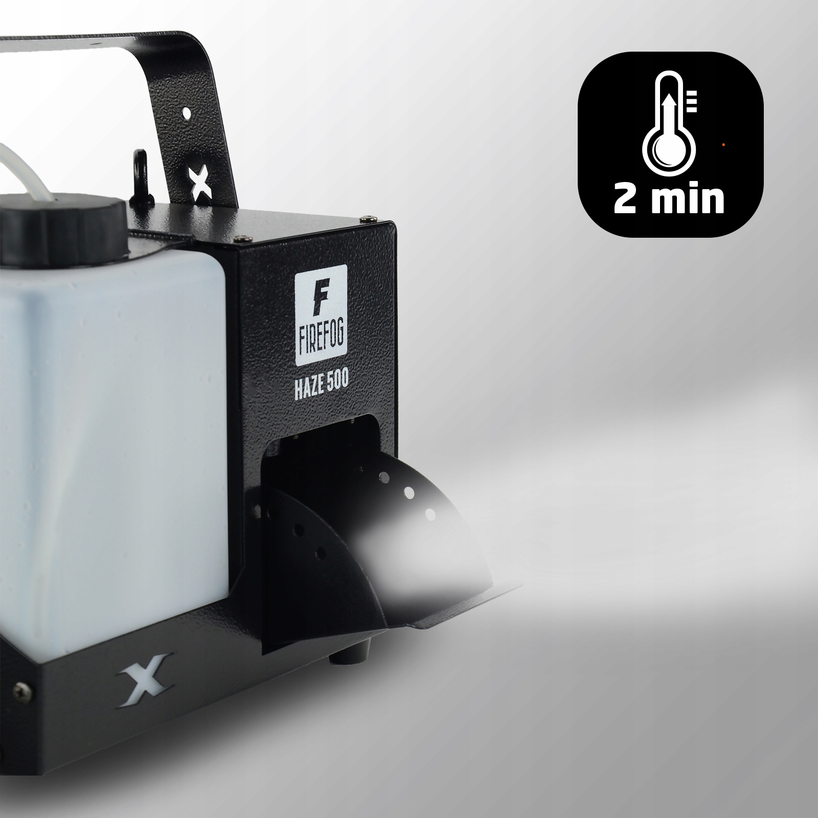 Hazer устройств, таких как Haze 500, используйте технологию нагрева воды на основе воды для получения легкого, сухого, тонкого тумана. Благодаря термостатически контролируемому нагревателю 500 Вт жидкость быстро и равномерно нагревается, что позволяет запускать работу всего через 2 минуты включения . Полученный туман отвлекается с вентилятором, интенсивность которого может регулироваться в трех градусах, что позволяет адаптировать эффект к конкретной сцене, пространству или событию.