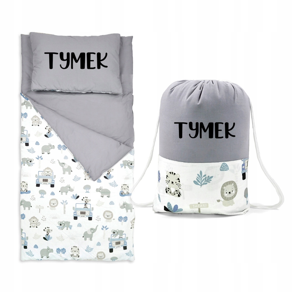 3) спальный мешок на шнурке, с напечатанным на нем именем ребенка (имя необходимо указать в комментарии при покупке)