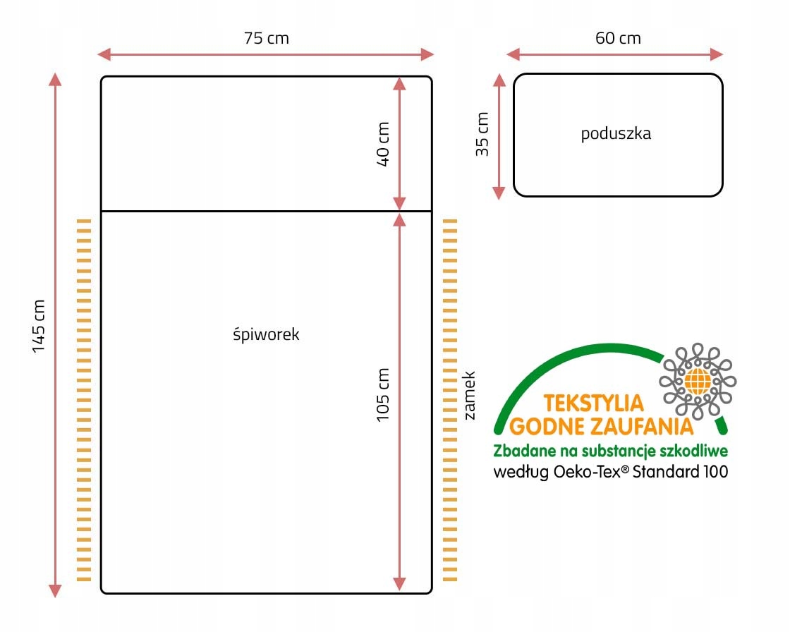 < р>1) Подушки двухсторонние, мягкие, размер 35х60см (+/- 2см)2) спальник, застегивающийся с двух сторон на молнию, размер 145х75см. (+/- 2 см)