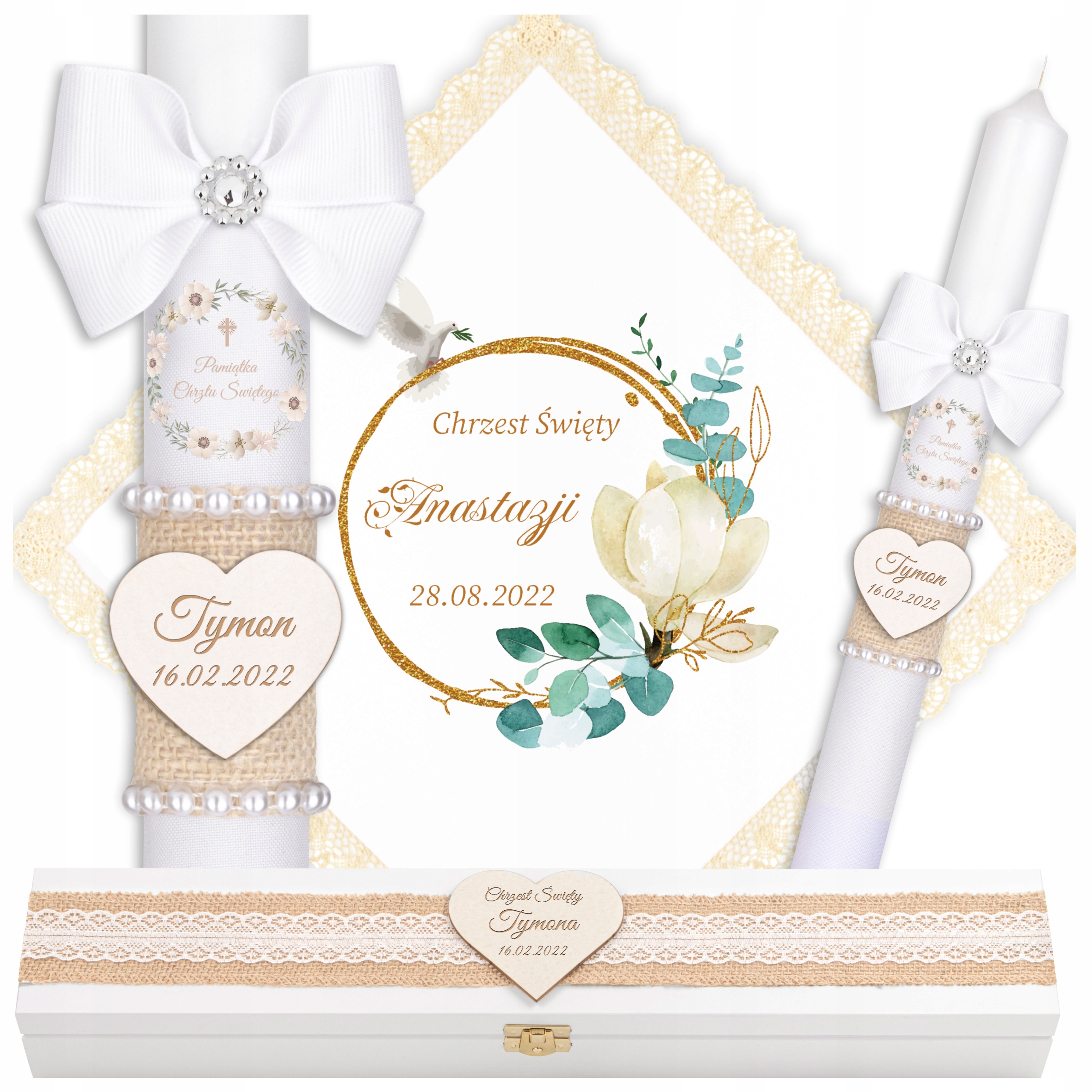 КРЕЩЕННАЯ СВЕЧА, КРЕЩЕННЫЙ КЕПОК, ДЕРЕВЯННАЯ ШКАТУЛКА