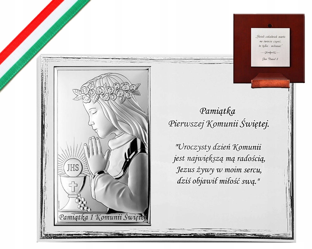 Уникальная картина на первом святом причастии для девушки. Продукт был сделан в Италии. Он имеет поверхность из матового и блестящего серебра. Этот тип изображения является идеальным случайным подарком. Это заставит получателя чувствовать себя особенным. Фотографии показывают подлинный вид продукта, который мы предлагаем