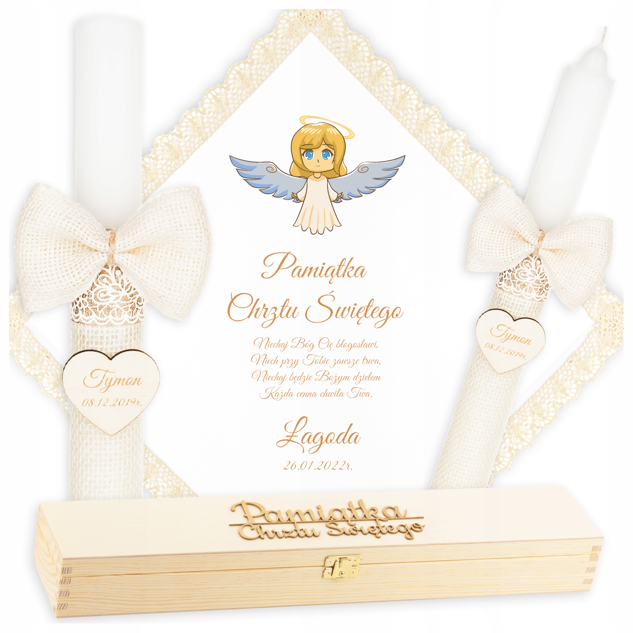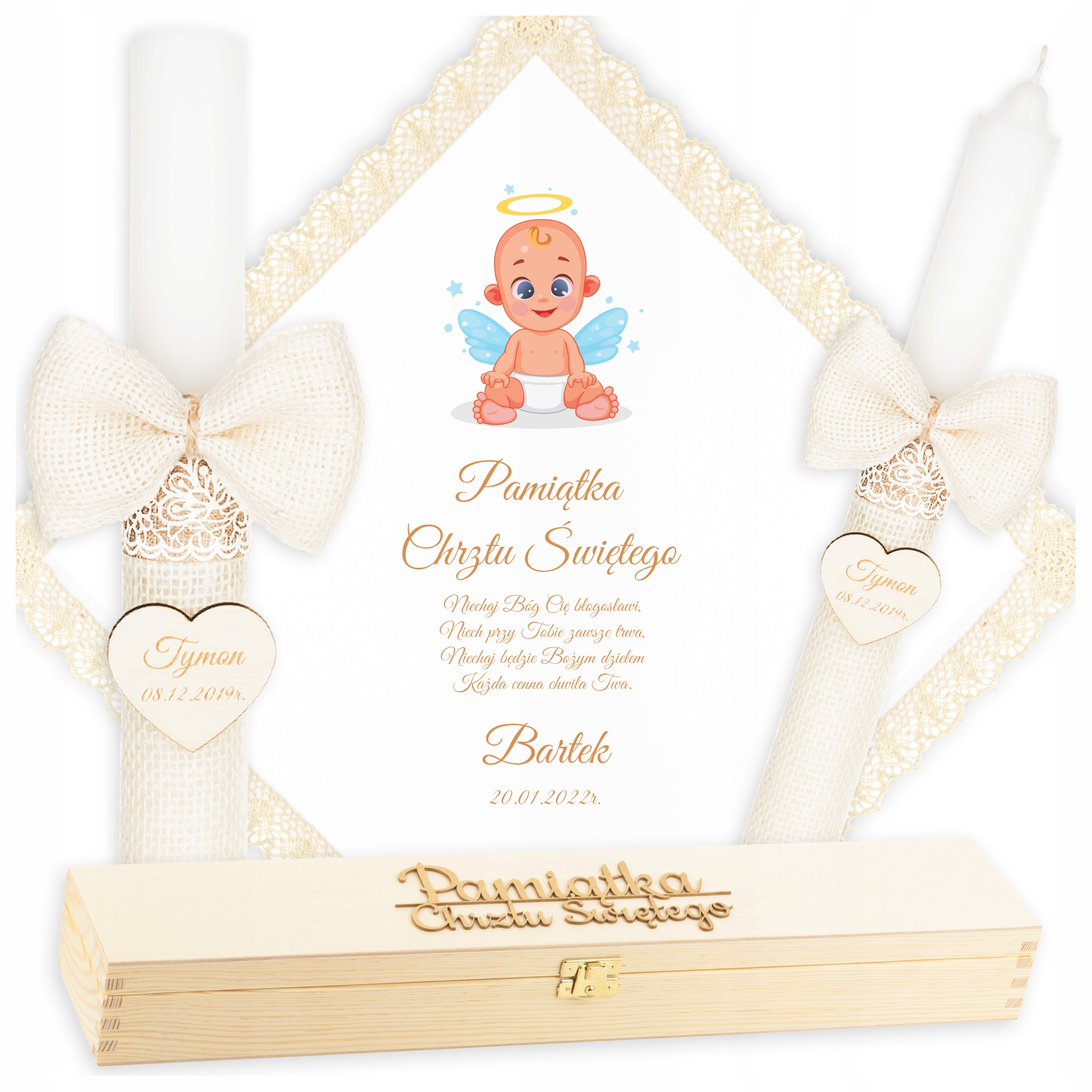 КОРОБКА ДЛЯ КРЕЩЕННОЙ СВЕЧИ АНГЕЛ КРЕЩЕННАЯ ОДЕЖДА