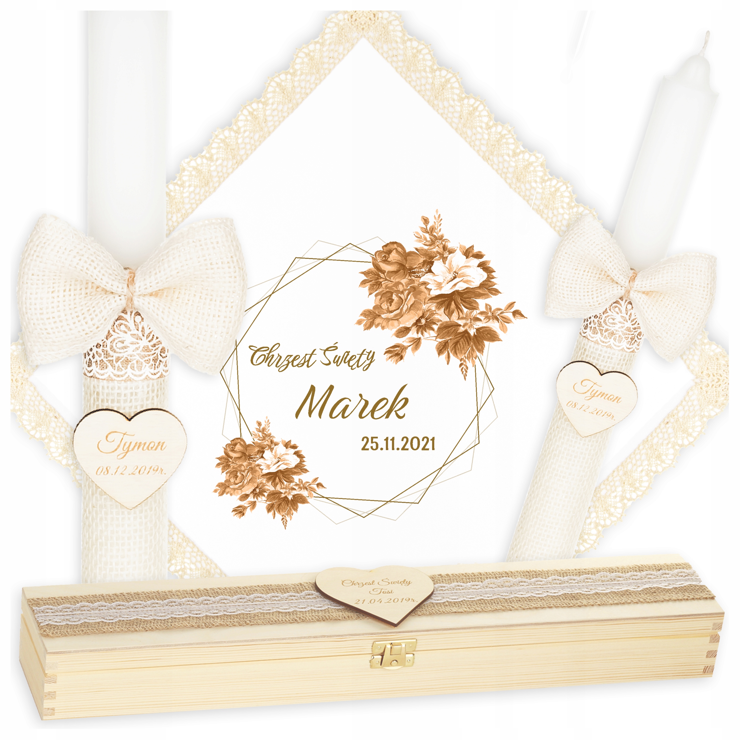 КРЕЩЕННАЯ СВЕЧА, КРЕЩЕСТВЕННАЯ ОДЕЖДА, ГРАВИРОВОЧНАЯ ШКАТУЛКА