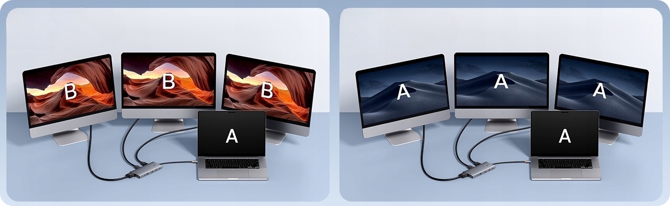 благодаря комбинации портов HDMI, DP и VGA, серия Hub baseus portaljoy позволяет подключаться к четырем мониторам, что значительно повышает производительность. Возможность расширения или клонирования экрана на многих устройствах обеспечивает лучшую организацию работы, более простое управление задачами и эффективное использование рабочего пространства.