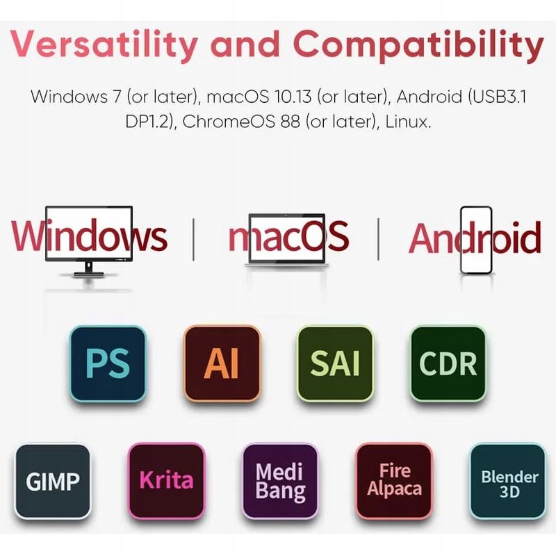 Model Xppen Artist 15.6 Pro V2 также выделяется с точки зрения технический Связь с компьютером происходит через Универсальный интерфейс USB-C, а источник питания представляет собой источник питания 5 В. Поддержка для Операционные системы очень широкие - планшет совместим С Windows 7 и более новым, MacOS 10.13 и более новым, Android (через USB 3.1 и Displayport 1.2 Alternate Mode), Chromeos 88 и Newer и Linux. также сотрудничает без каких -либо проблем со всеми популярными Графические приложения , такие как Adobe Photoshop и Illustrator, Саи, Корел Розыр, Гимм, Крита, Медибанг, Огненная Покака и многое другое. Независимо от Будьте дело с цифровой живописью, графическим дизайном, искусством комический или даже архитектурный набросок, новый художник Xppen 15.6 Pro v2 имеет все, что вы ожидаете от профессионального монитора рисунок. Он убедит вас показать уникальный
