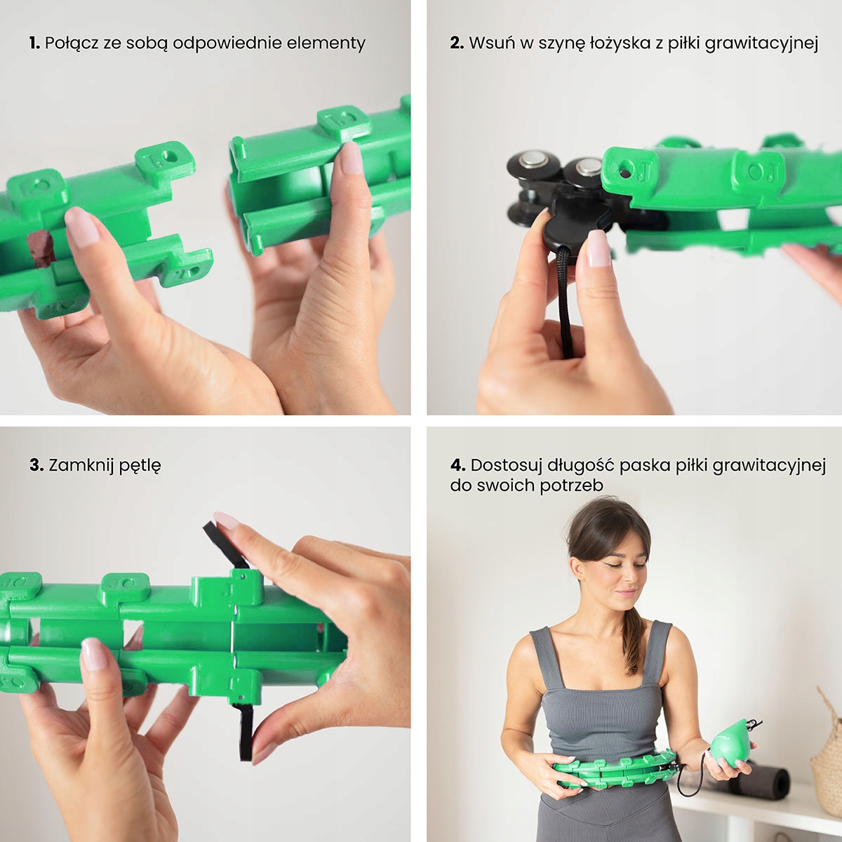 Дополнительным преимуществом является возможность изменения длины гравитационного шара. ремень. Это от 24 см до 40 см. Чем длиннее ремень, тем больше центробежная сила при выполнении упражнений, т. е. тем больше вес и выше сложность выполнения вращений.