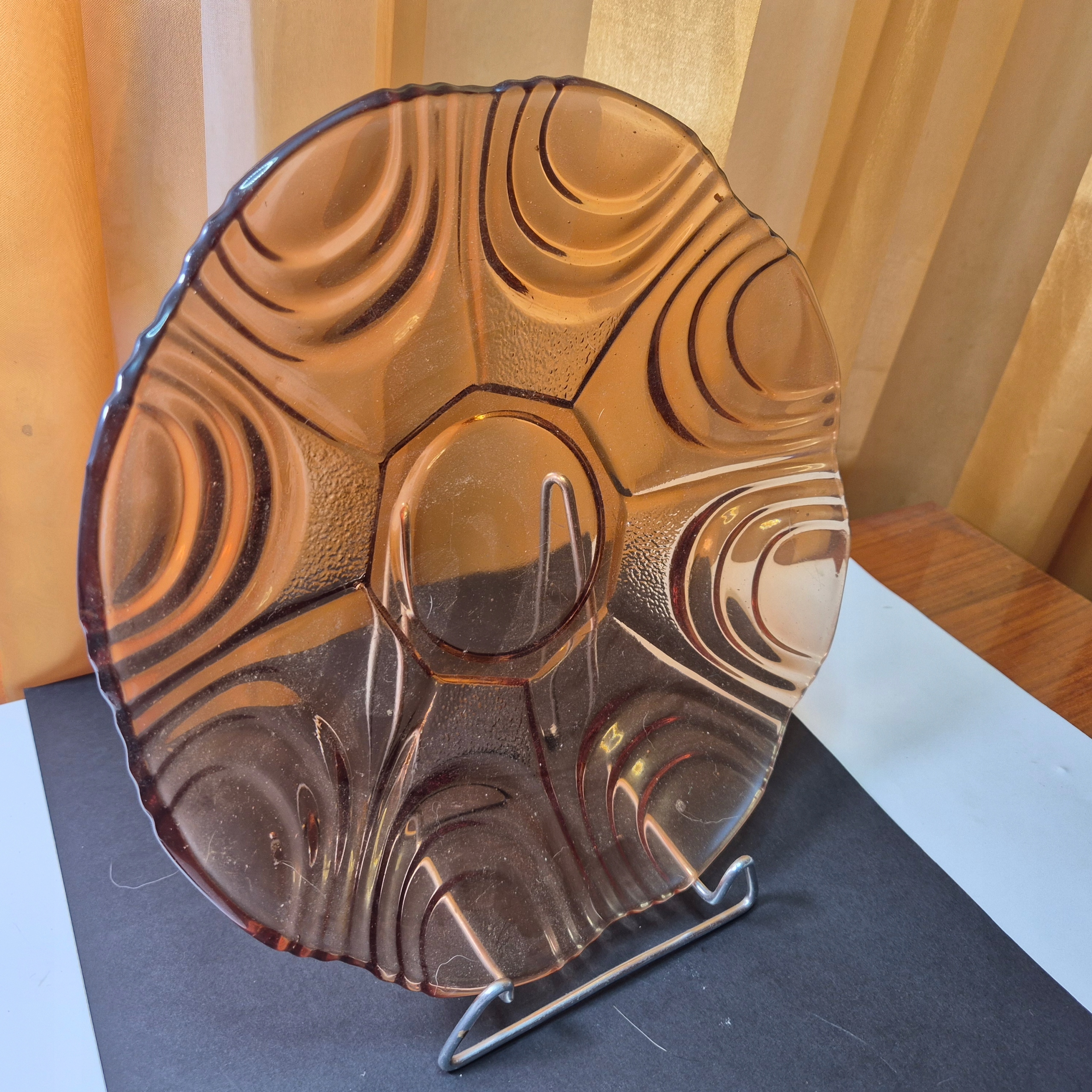 Стеклянная патера для теста, Розалиновадж, Каталог (модель № 502) Каталог таблиц и аксессуаров 1949 года, Hellworks Hydrangea в Piotrków. Прессованное стекло, окрашенное в массу