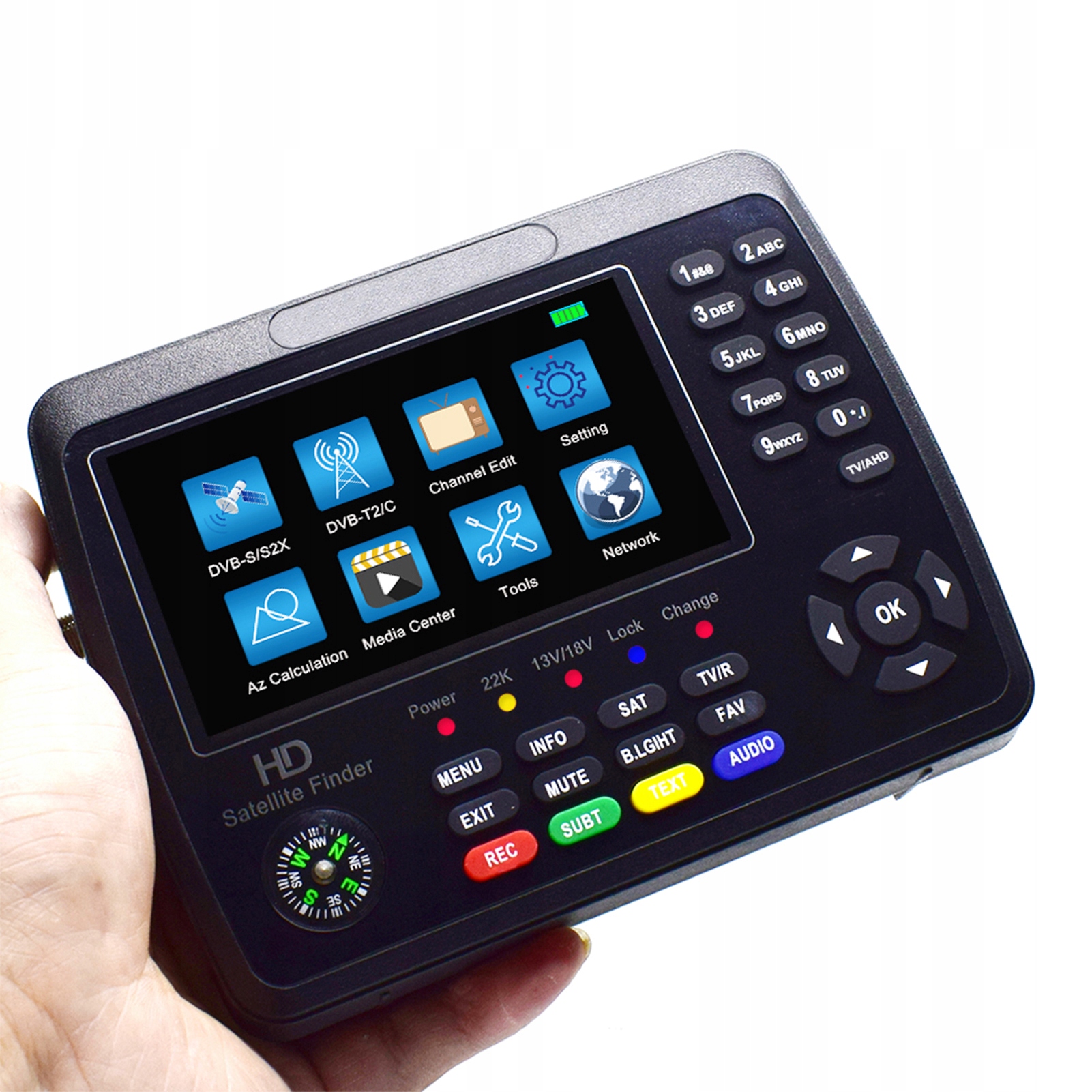 1. Эта спутниковая поисковая система имеет 4,3-дюймовый ЖК-экран и полностью совместима с DVB-S/S2/S2X/T/T2/C. Цифровое изображение и живой звук, оборудование декодирует H.264/H.265 (10 бит).