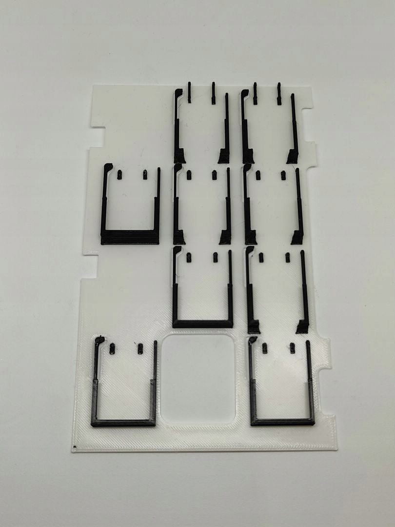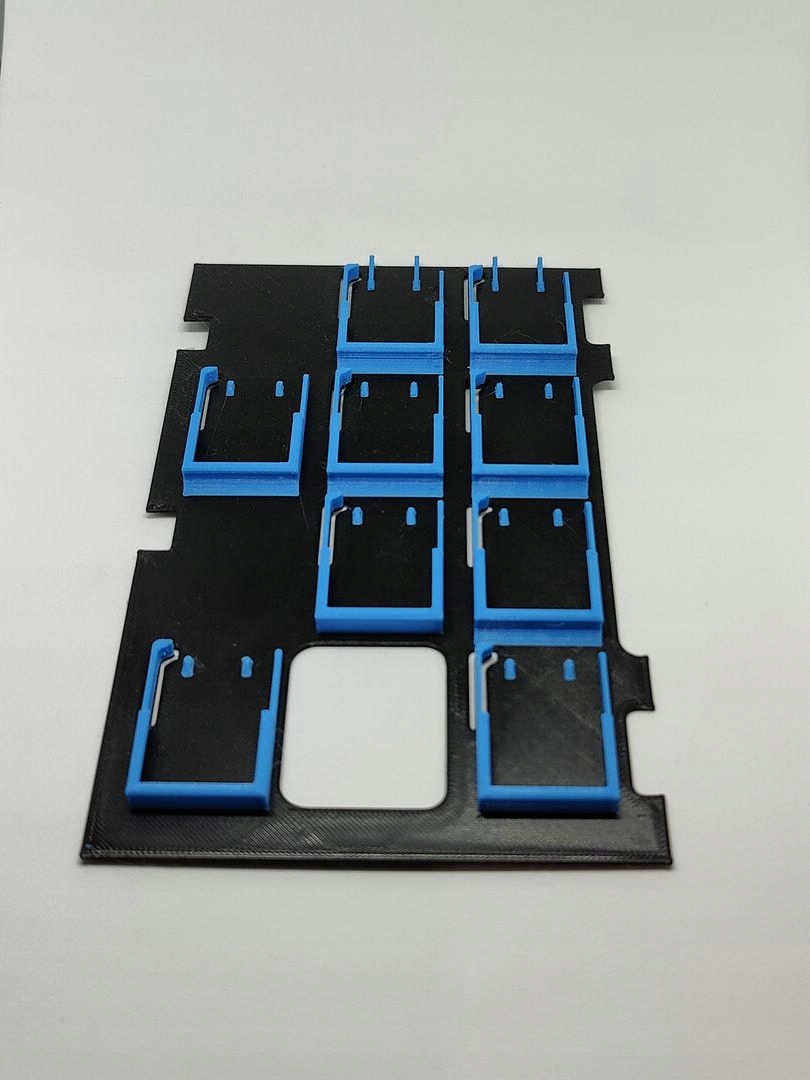 Это отличный и полезный гаджет. Благодаря этому вы можете взять с собой в поездку всего одну коробку и иметь внутри целых 10 игр! Благодаря многочисленным попыткам мне удалось подогнать размер окон таким образом, чтобы игры легко помещались в них, и в то же время оставались на месте и не выпадали даже при сильном встряхивании коробки. Защелка, видимая слева, фиксирует карты и удерживает их на месте, но когда вы пытаетесь вынуть игру, она откидывается назад и позволяет вам вынуть ее.