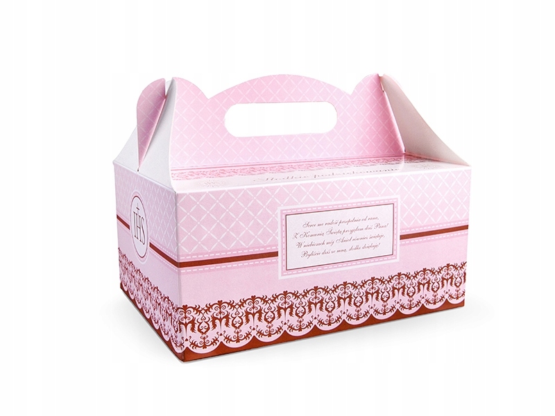 Декоративные коробки для тортаДекоративные коробки для торта причастия с розовым принтом и стишком,