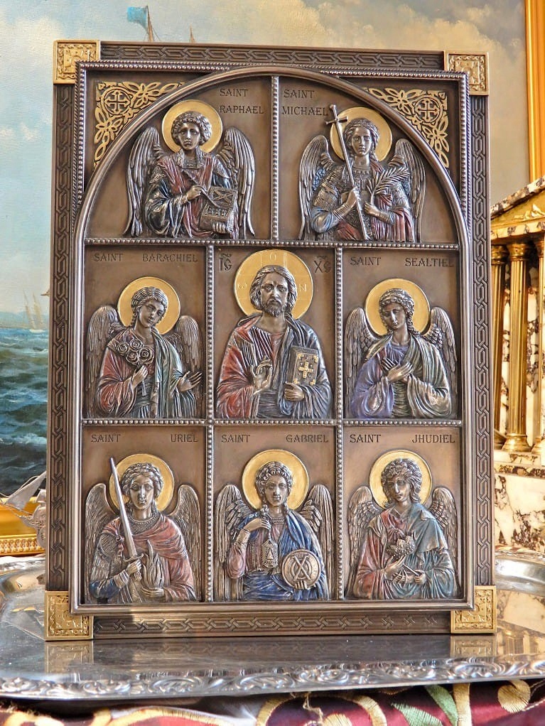 Приглашаю Вас приобрести замечательный барельеф или, возможно, более плоский рельеф с изображением Христа и семи архангелов.