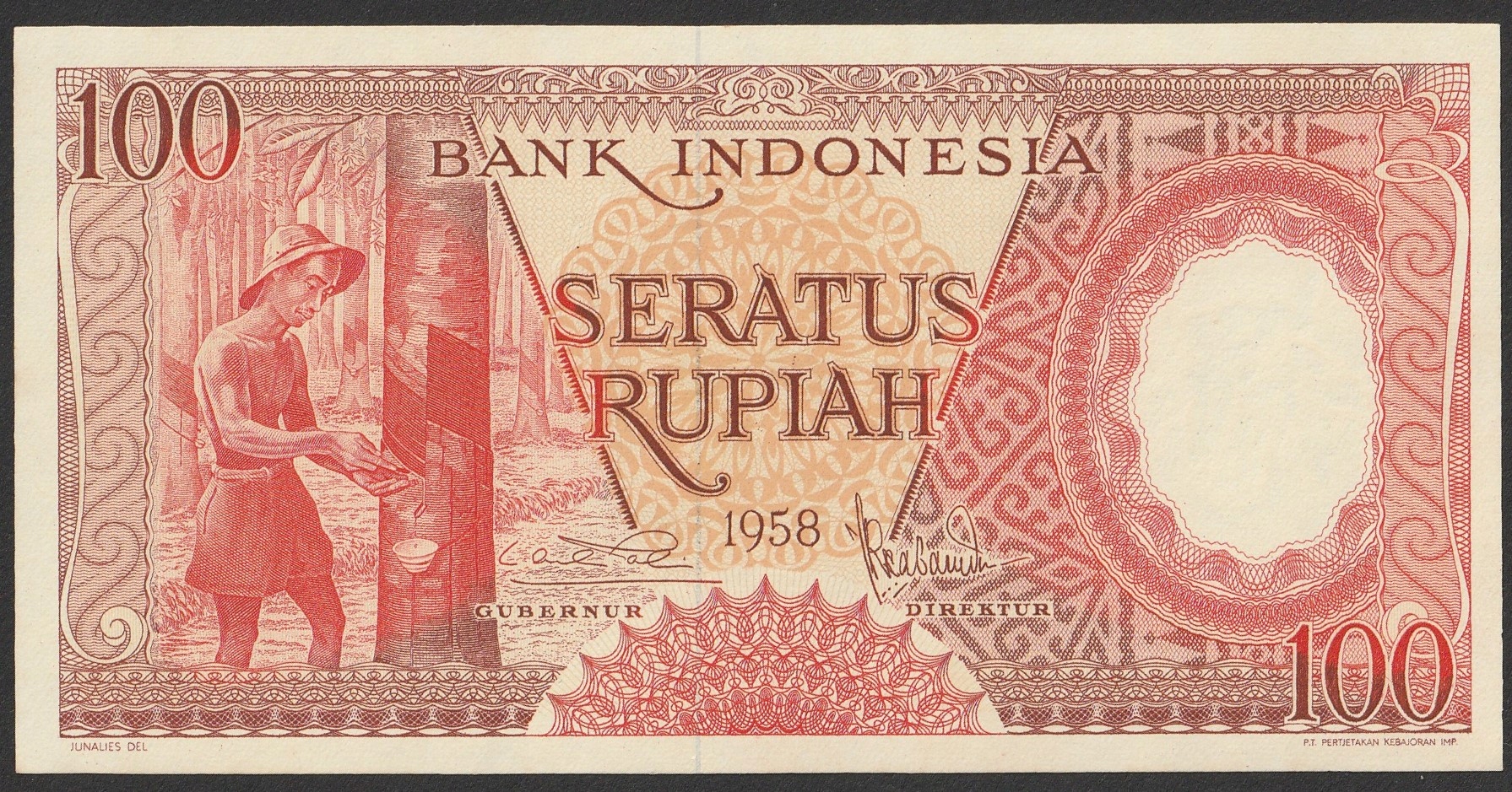 Indonezja 100 rupiah 1958 - stan bankowy UNC