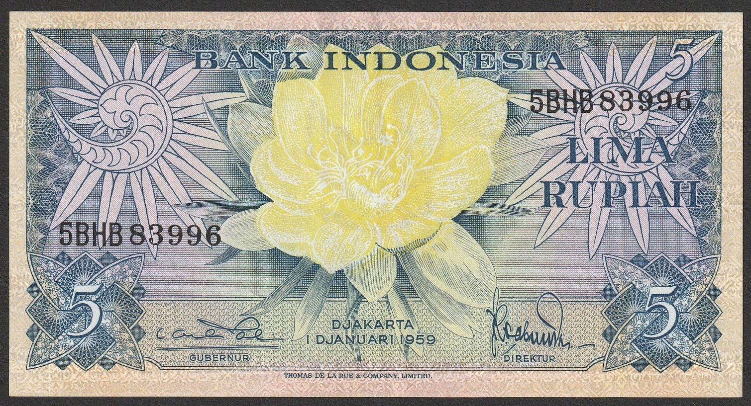 Indonezja 5 rupiah 1959 - stan bankowy UNC -
