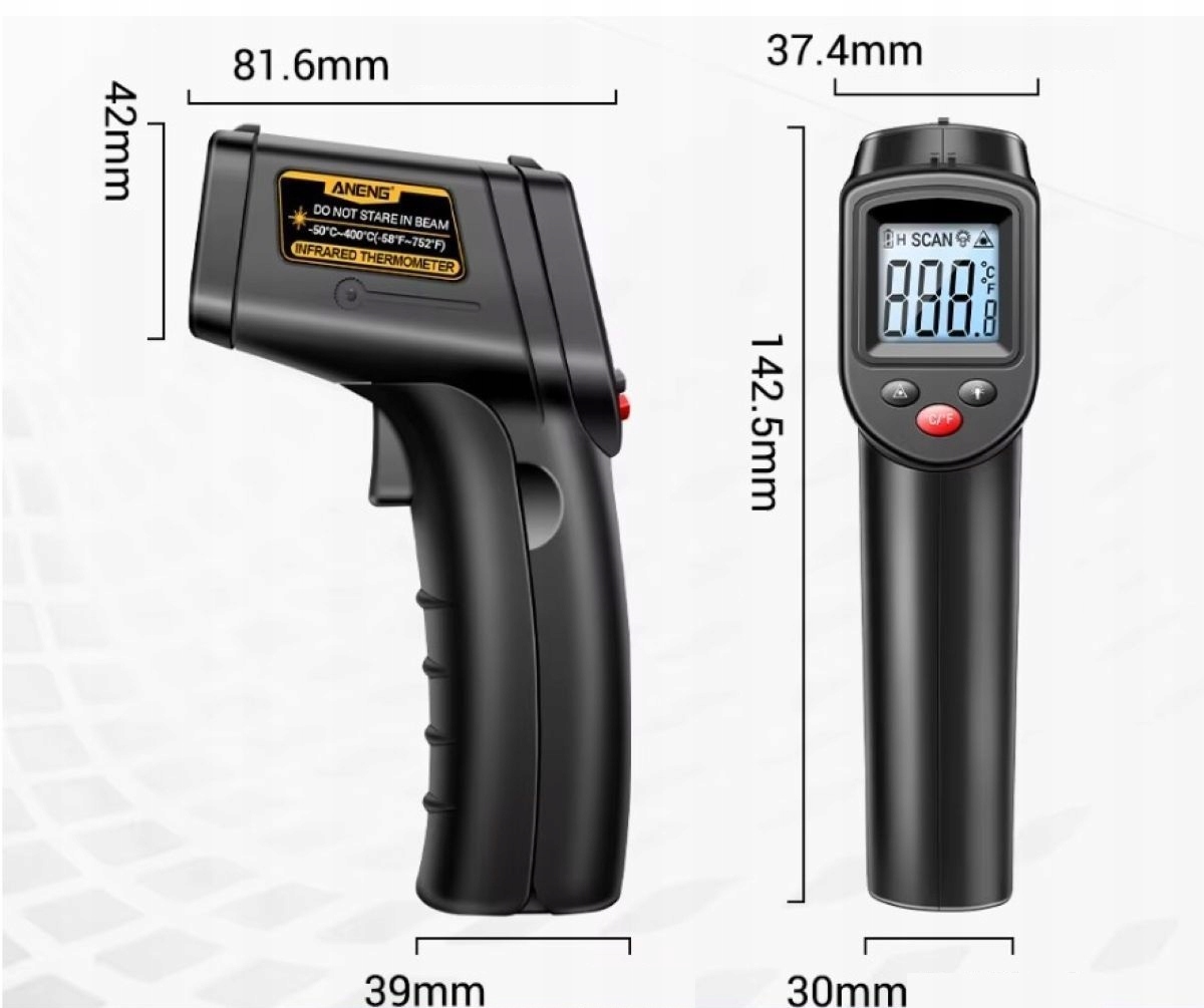 Широкий диапазон измерения высокой и низкой температуры - Диапазон измерений -50 ℃ ~ 400 ℃ Измерение является быстрым и точным