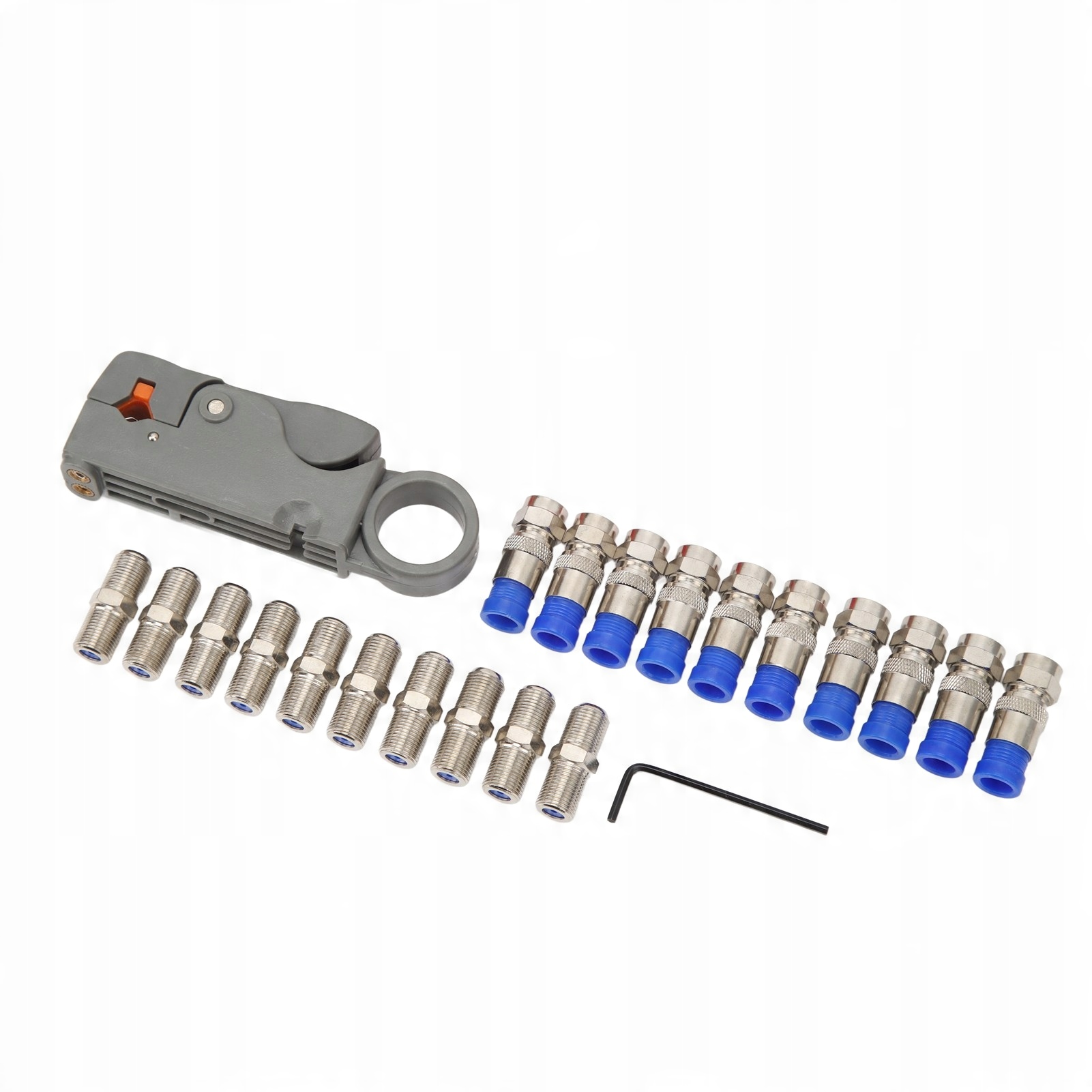1 щипцы для зачистки проводов 1 шт. 1 шестигранный ключ 10 синих разъемов 10 разъемов коаксиального кабеля RG6 F