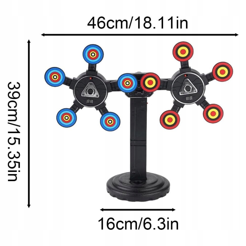 Эта электрическая игрушка с роторным экраном была специально разработана для детей и имеет интеллектуальную электронную оценку (0-99 очков), звуковые эффекты во время удара, вызов, связанные с ровотворением 360 ° и концентрацией тренировок + концентрации! Основа может быть стабилизирована путем добавления воды и сделана из безопасных и экологически чистых материалов, благодаря которой это отличный выбор для подарка!