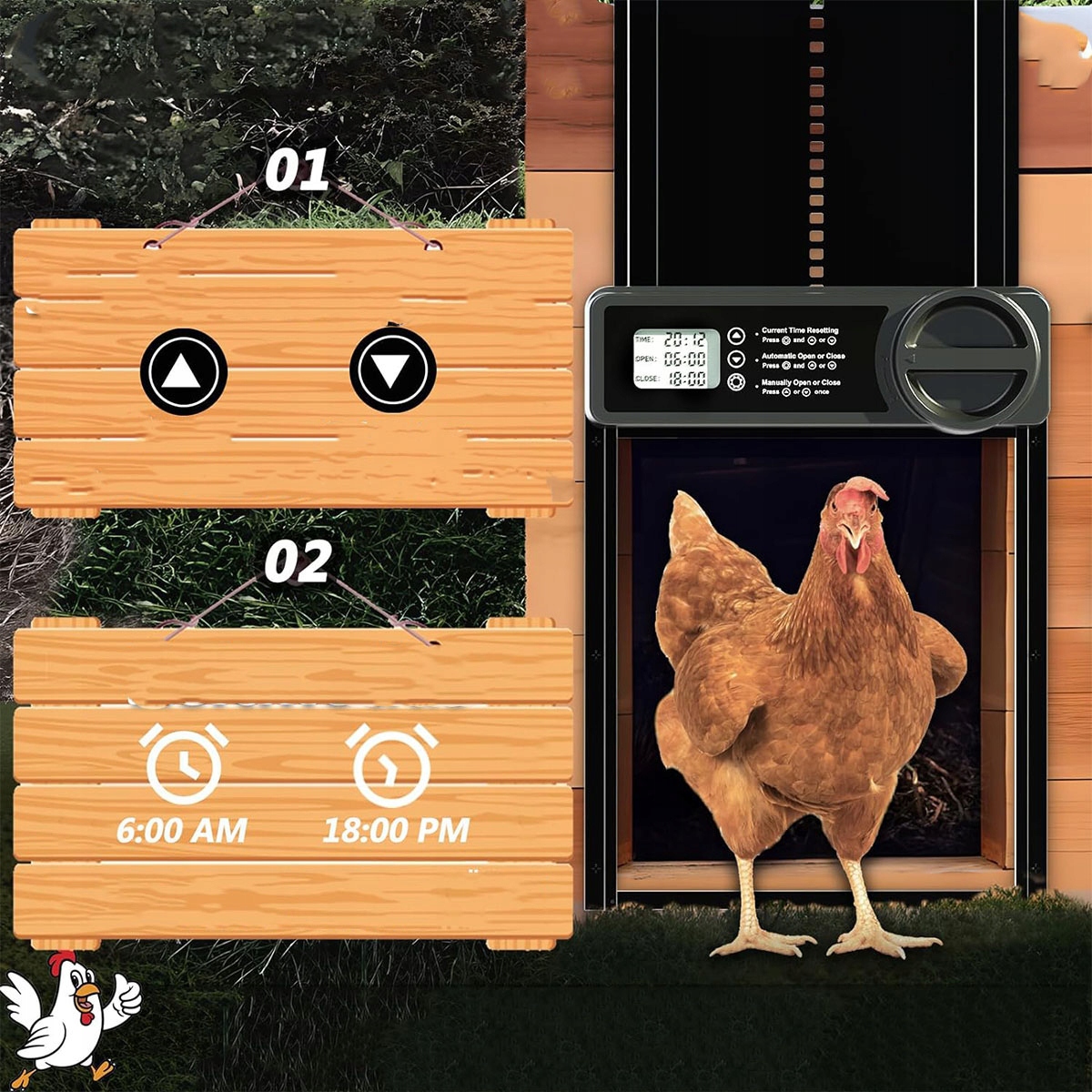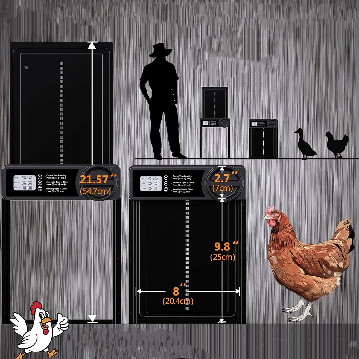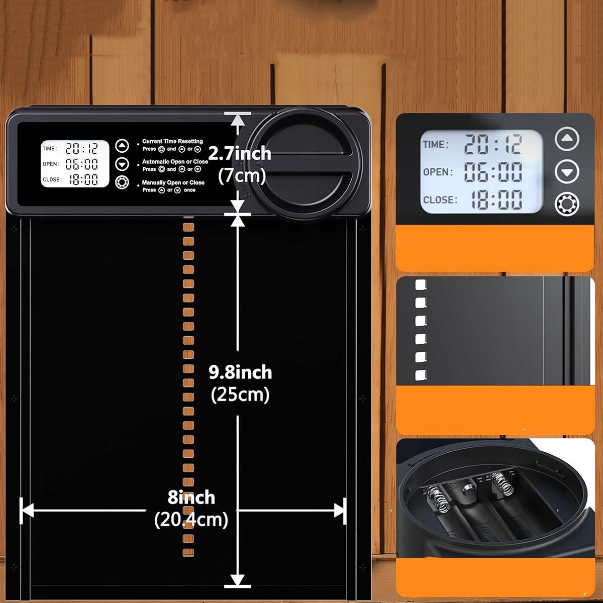 Интеллектуальные автоматические двери в Henhouse с таймером ЖК -экрана 33x24 см.