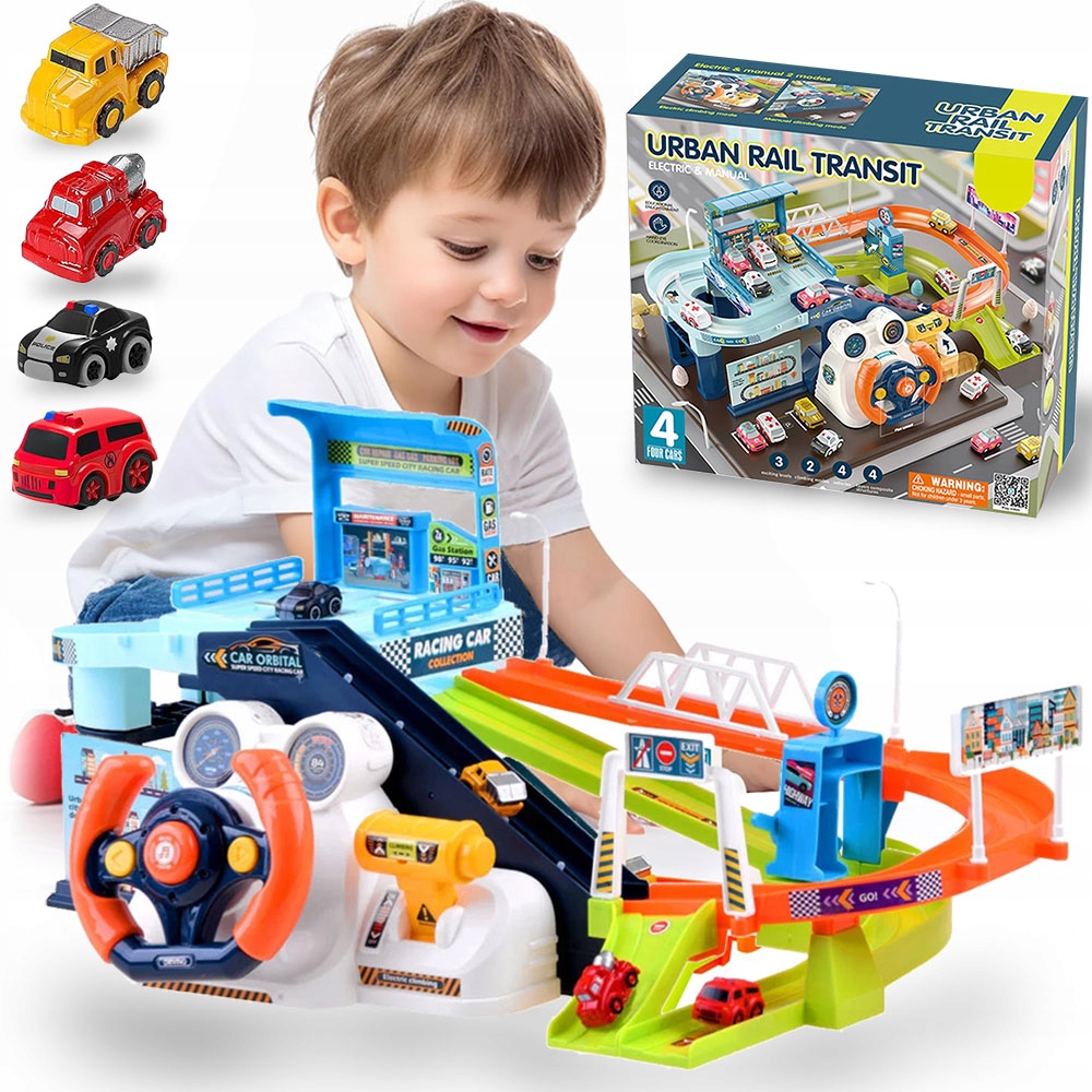 Представляем вам интерактивную парковку с рулем — развивающую игрушку, которая отправит вашего ребенка в путешествие, полное приключений. В комплект входят парковка и трасса, 4 машинки, руль и многое другое. Эти дополнительные элементы сделают игру еще более увлекательной, а также разовьют интерес вашего ребенка к автомобилям. Интерактивное рулевое колесо с питанием от аккумулятора позволяет воспроизводить такие звуки, как названия автомобилей и песни (на английском языке) или звуковой сигнал. Набор оснащен платформой, управляемой шестерней. Благодаря этому вам не придется беспокоиться о том, что игрушка разрядится, пока ваш ребенок ею пользуется!