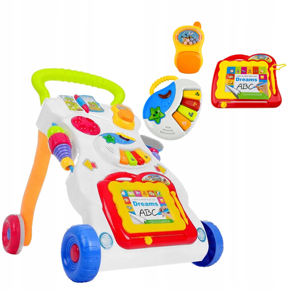 Прогулки прекрасно подходят для изучения первых слов, букв, цифр и цветов. Он также поддерживает развитие ручных и межличностных навыков. Он также помогает делать первые шаги, обеспечивая устойчивую опору благодаря прочным колесам.