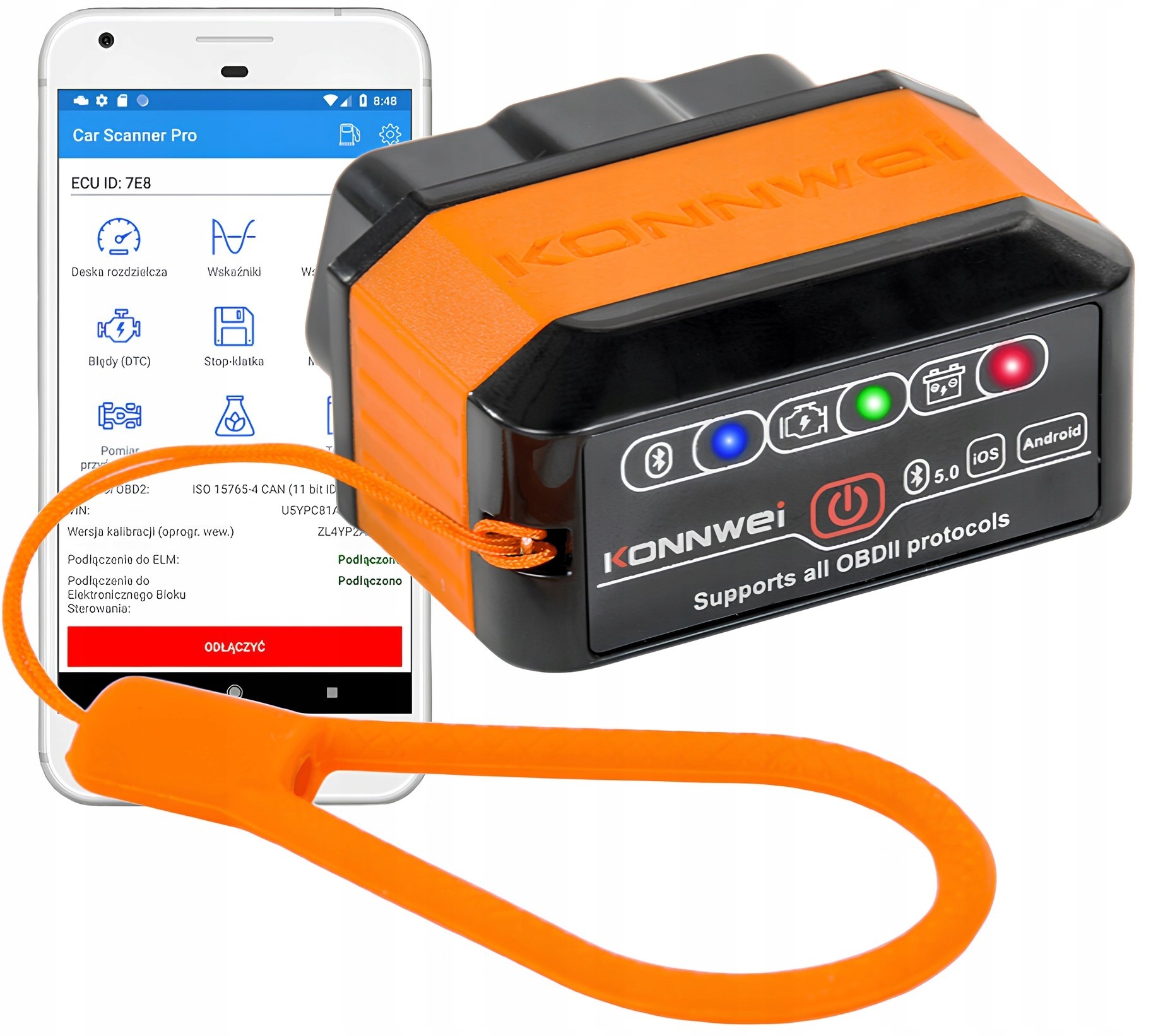 диагностический интерфейс ELM327 OBD2 Bluetooth 5.0 (Android/ IOS) H2> Почему стоит выбирать интерфейс Konnwei? > Значительно более короткое время подключения с контроллером двигателя ECU, чем большинство интерфейсов, предлагаемых на польском рынке. Встроенный модуль с высоким качеством Bluetooth 5.0 обеспечивает постоянное и стабильное соединение, без перерывов и риска потери данных. > Батарея. >