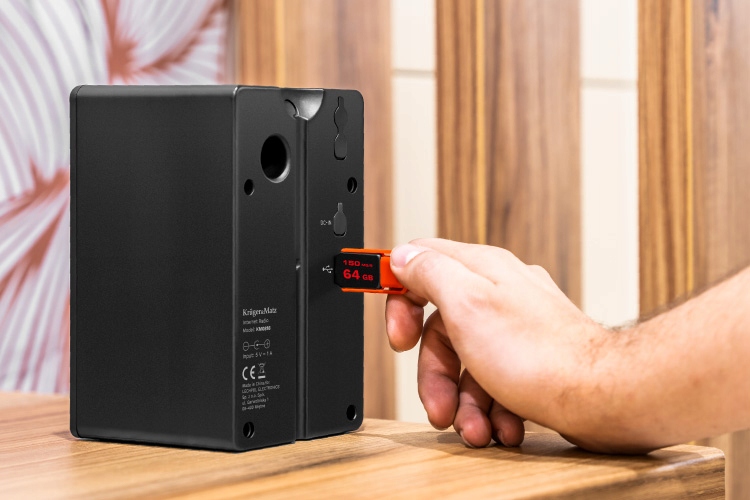 Функциональность интернет -радио KM 818 также увеличивается по порту USB. Благодаря этому вы можете не только подключить портативный диск памяти с вашей любимой музыкой, но и легко заряжать свой смартфон. Более того, устройство также дает вам возможность воспроизводить музыку с компьютера через сервер UPNP