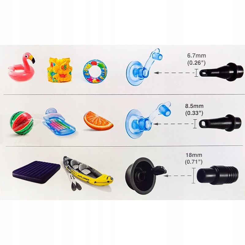Откройте для себя комфорт благодаря нашим универсальным надувным предметам! Четыре разных насадки сопел в наборе гарантируют, что вы сопоставите его с каждым матрасом, кроватью или понтоном. С максимальным давлением 8 фунтов на квадратный дюйм вы быстро накачиваете свои любимые продукты.