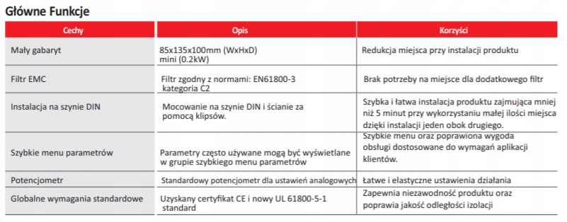 установке на DIN-рейку. Надежность продукта возросла благодаря встроенному фильтру ЭМС C2 и использованию нового стандарта UL. Мы предлагаем два типа ввода-вывода (стандартный и расширенный), встроенный потенциометр и дополнительные опции.