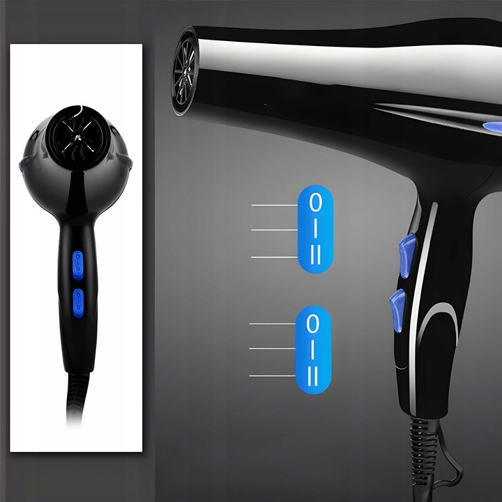 Благодаря фен, вы можете легко сформировать свою прическу после каждого мытья волос и после ухода. Устройство имеет двух рабочих скоростей , которые позволяют регулировать мощность выдувания и три уровня регулировки температуры воздуха - комбинация наиболее мощных настройки сделает высыхание практически мгновенно и сразу. Метод работы сушилки может быть адаптирован к индивидуальным предпочтениям и типу и состоянию волос