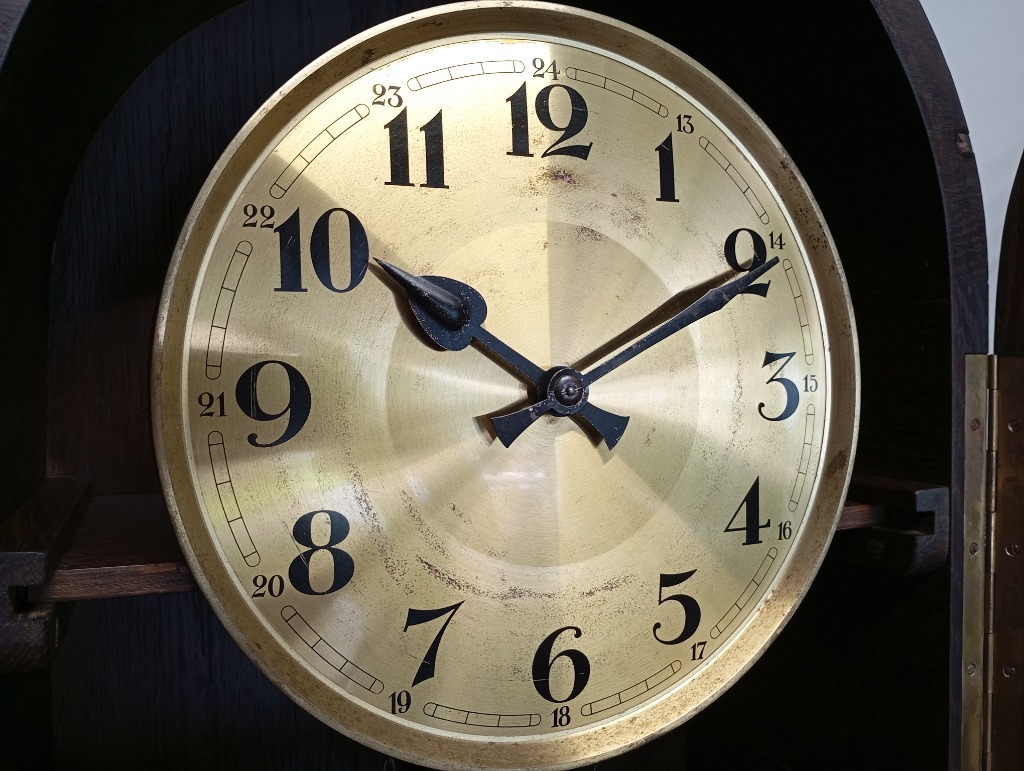 Проверка часов очень хорошая !!! и оригинальное состояние, в темном дубовом цвете.