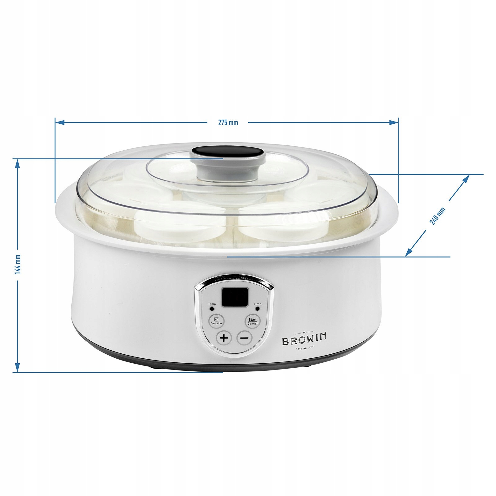 С этой йогуртницей легко приготовить домашние молочные и растительные йогурты, а также кефир. Вы можете приготовить их вместе с детьми, пропагандируя домашнюю обработку. Благодаря возможности регулировки времени работы и температуры вы можете запрограммировать работу устройства в соответствии с инструкциями используемого вами рецепта. Электронный дисплей позволяет контролировать процесс созревания йогурта. Стеклянные контейнеры с крышками облегчают хранение готового продукта. Стоит попробовать! Вы наверняка удивитесь, насколько просто это решение.