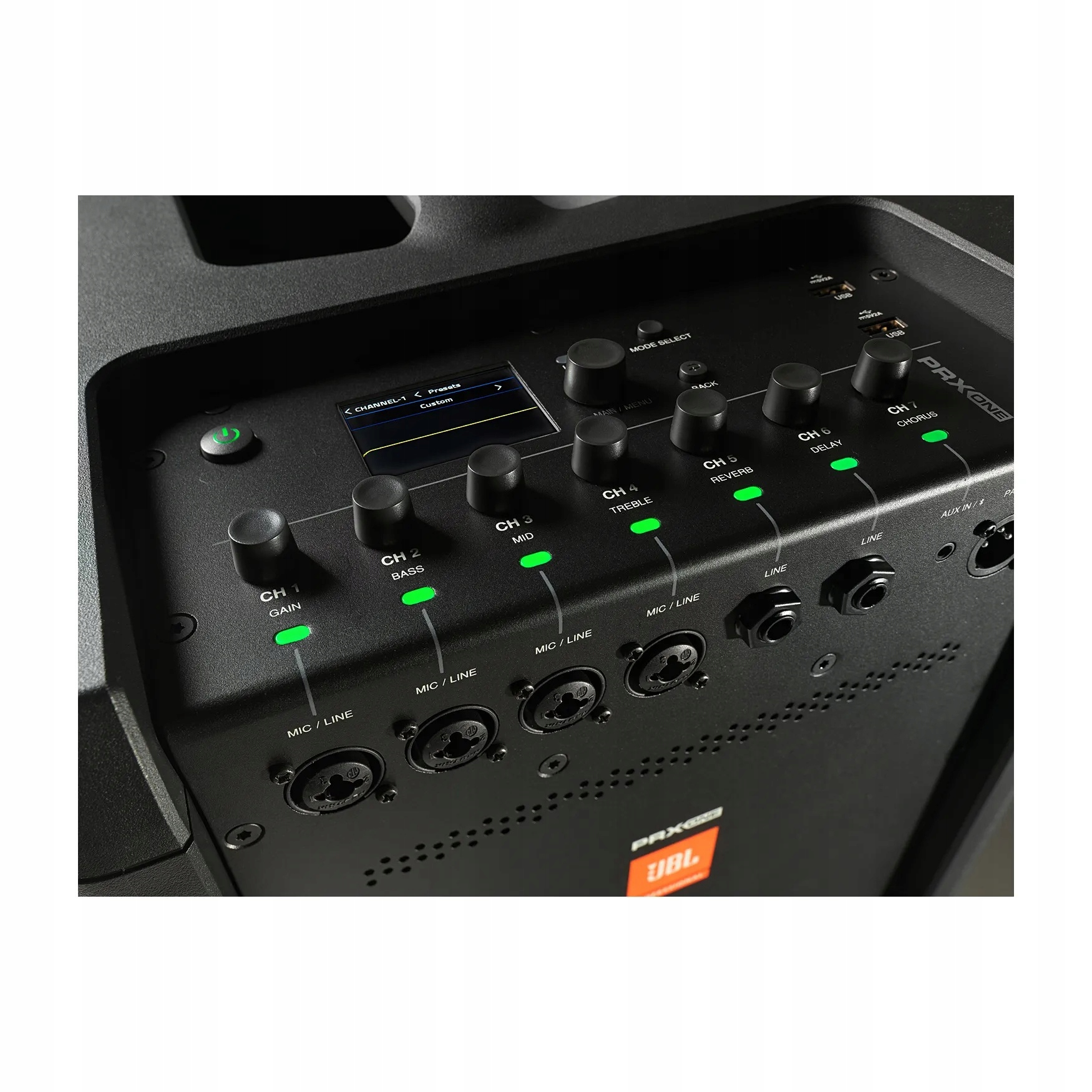 JBL PRX ONE предлагает два независимых канала фантомного питания +48 В, четыре комбинированных разъема XLR, один 1/8-дюймовый вход, два выделенных входа Hi-Z и функции Bluetooth 5.0, включая потоковую передачу звука на одно устройство и управление до 10 устройств. Два встроенных порта USB можно использовать для зарядки внешних устройств или питания беспроводных систем AKG.