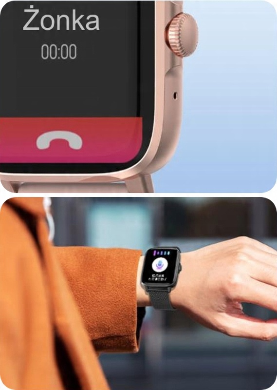 - Оснащено: HD-динамиком, HD-микрофоном, вибрацией, пульсометром, шагомером, тонометром, потенциометром для переключения циферблатов.