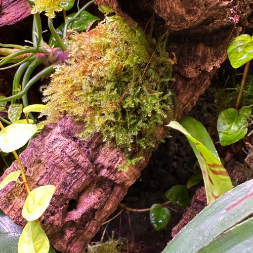 Его висящая привычка, напоминающая плачущую иву, делает его уникальным дополнением к террариуму. Он идеально прикреплен к корням и украшениям, создавая естественную тропическую атмосферу. Благодаря своей структуре он предоставляет животным идеальным укрытием и помогает поддерживать достаточную влажность на террариуме.