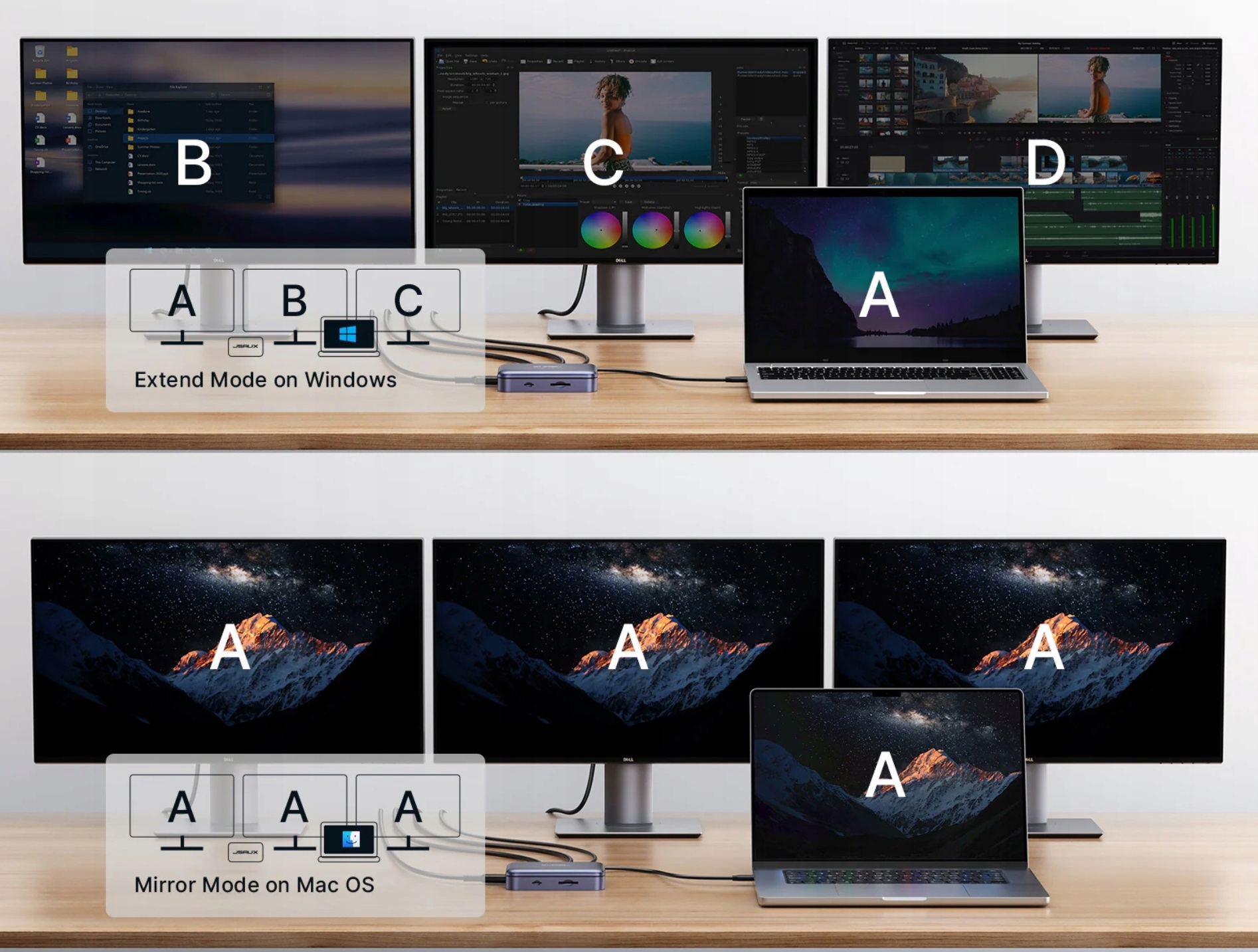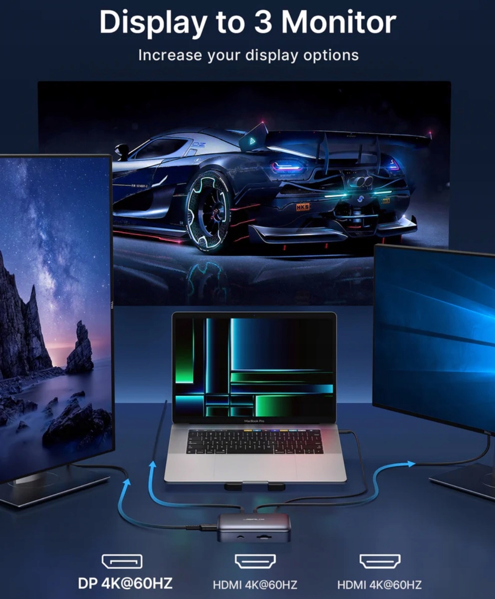 ✅ Адаптер позволяет расширить экран до трех мониторов через 2x hdmi -розетку и гнездо Displayport в качеством 4K 60 Гц в Windows