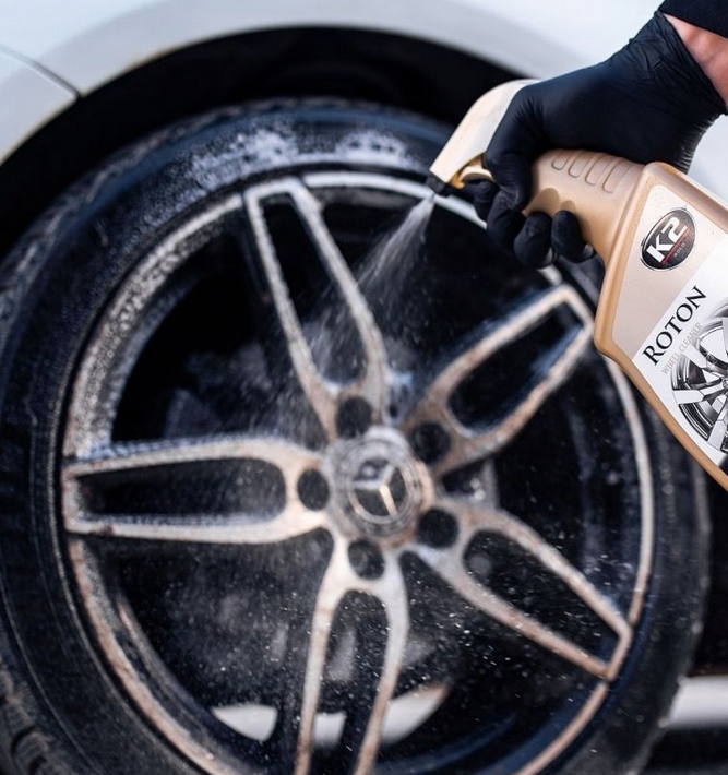 k2 roton 750 мл - это чрезвычайно эффективное и безопасное средство, предназначенное для удаления сложных металлических примесей из сплавов, стальных дисков и других элементов кузова. Он хорошо справляется с пылью из тормозных колодок, металлических частиц и дорожной грязи. Создает эффект «кровотечений», который показывает, насколько активно работает подготовка.