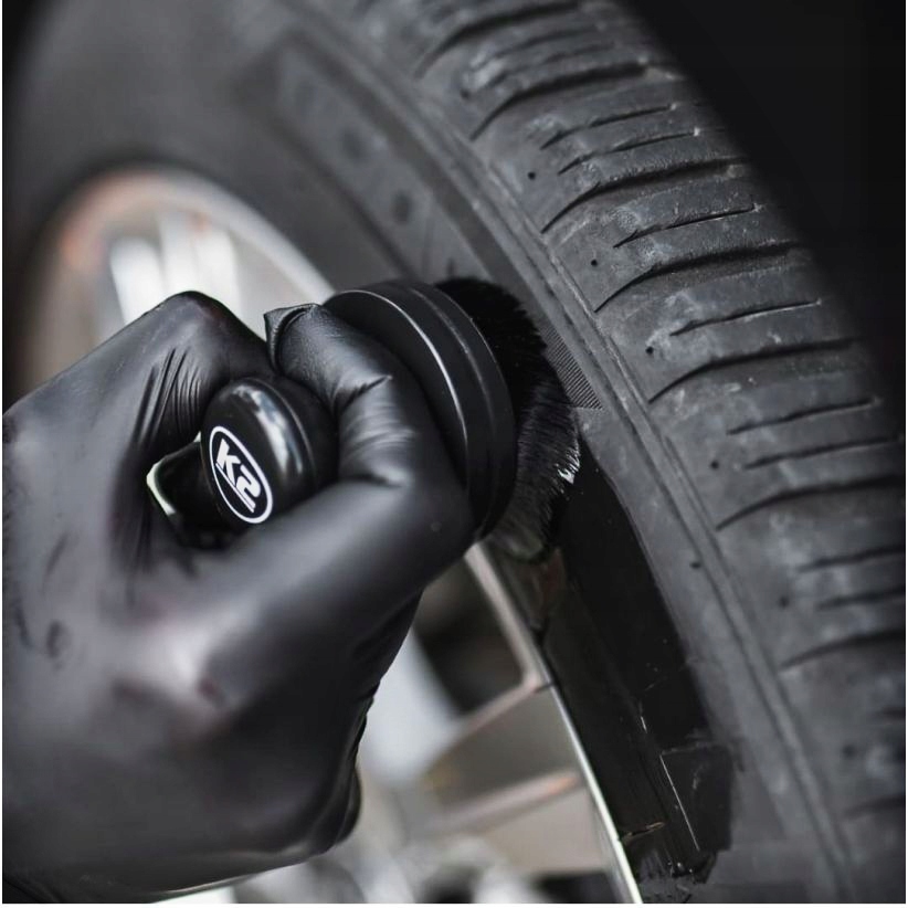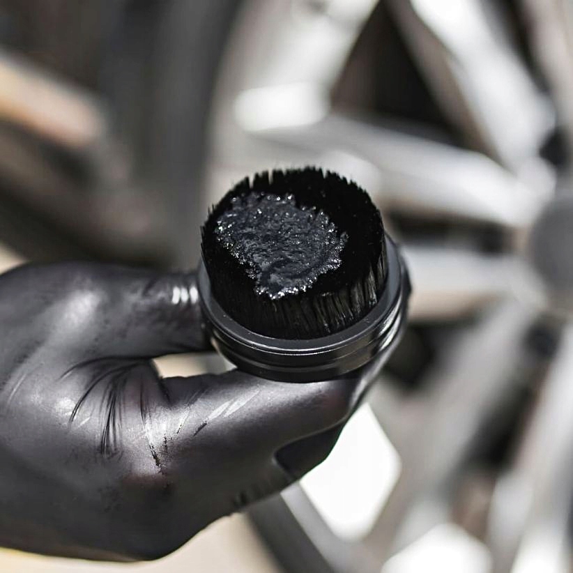 - аппликатор шин в виде кисти с толстыми щетинками. посвящен всем, кто хочет получить глубокую черную и постоянную защиту поверхности шин. Его мягкие щетинки позволяют вам точно покрывать каждый фрагмент шины, независимо от того, что на нем размещены тиснения и маркировки. подставка, включенная в набор, позволяет удобно хранить аппликатор , защищая щетину от грязи и повреждения.