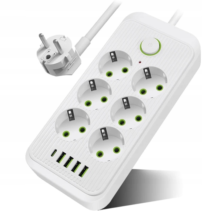 Удлинитель имеет 6 розеток, 4 порта USB и один вход типа C, что позволяет одновременно подключать до 11 различных устройств.