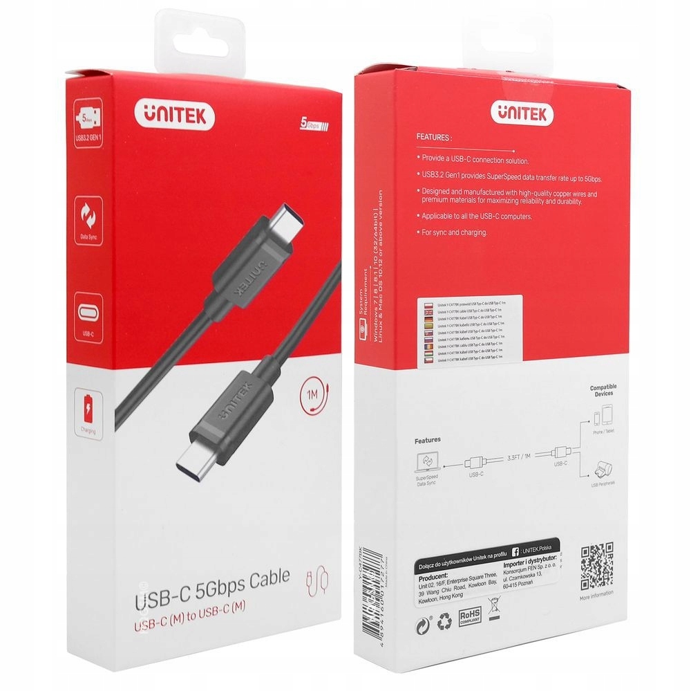 USB-кабель UNITEK типа C | Кабель USB-C — USB-C | Дата, Видео | 100 см