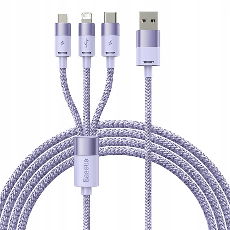 USB-кабель Baseus StarSpeed 3 в 1, USB-C + micro USB + Lightning, 3,5 А, 1,2 м (фиолетовый)