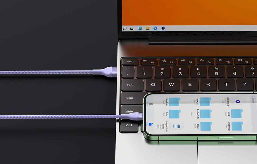 Кабель Baseus Flash II также позволяет вам для быстрой передачи файлов между устройствами (на разъемах USB-C и Lightning). Он обеспечивает скорость передачи до 480 Мбит/с, поэтому вы сможете скопировать все необходимые фотографии, видео или документы в мгновение ока. Вам больше не придется долго ждать — наслаждайтесь молниеносной передачей и экономьте время!