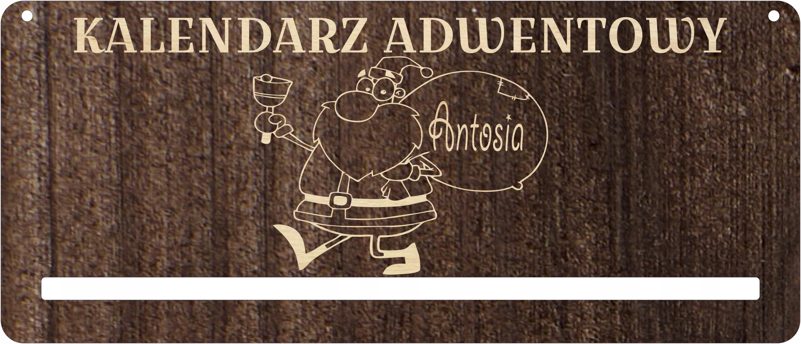 Eko Advent Calendar - коричневая деревянная тарелка с персонализацией. Красивые гравированные рождественские узоры с именем ребенка. Мемориальная доска имеет отверстия и джутовая струна для подвешивания в выбранном месте. Вы можете прикрепить мешки, мешочки, коробки или другие маленькие элементы к тарелке, в которые вы можете положить небольшой подарок. Откажитесь от времени до Рождества довольно необычным образом. Календарь Advent - отличная идея подарка для детей всех возрастов. Календарь Advent также является прекрасным внутренним украшением во время Рождества. Наше предложение включает в себя несколько дизайнов деревянных тарелок с отдельной гравировкой на выбор. Мы также приглашаем вас купить другие элементы для календаря, то есть коробки, сумки, сумки, цифры (доступны на других аукционах). H2>