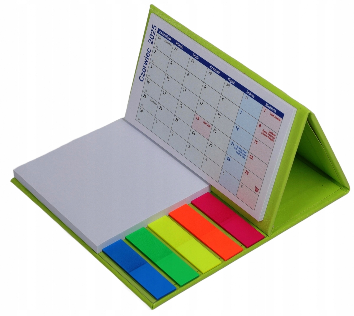 Удобный небольшой календарь, чтобы положить на стол. Укрепленный стенд в эксклюзивном шпоне обеспечивает долговечность и эстетический вид календаря. Прозрачный календарь облегчает планирование и управление сроками. Календарь отмечен не работающими днями, выбранные обычные и религиозные праздники и коммерческие воскресенья.