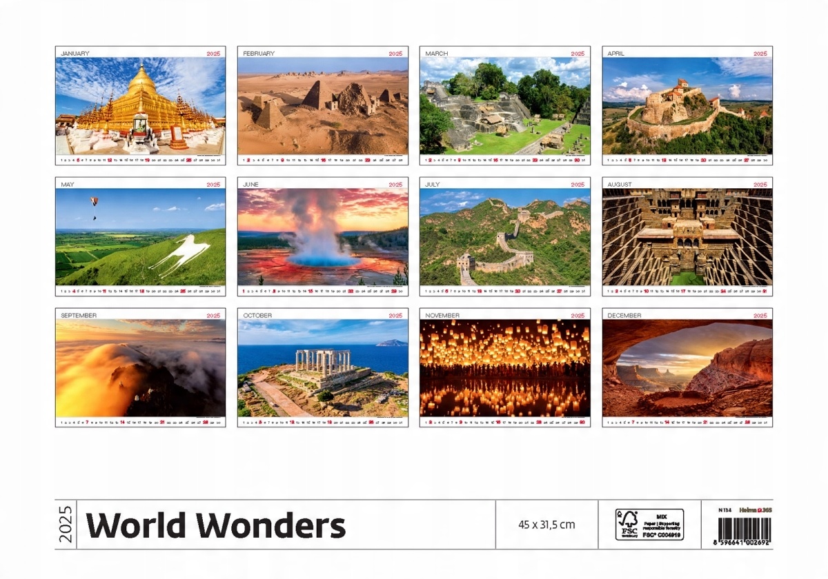 Kalendarz WORLD WONDERS 2025 CUDA ŚWIATA PODRÓŻE ZACHWYCAJĄCE ZDJĘCIA 45x32