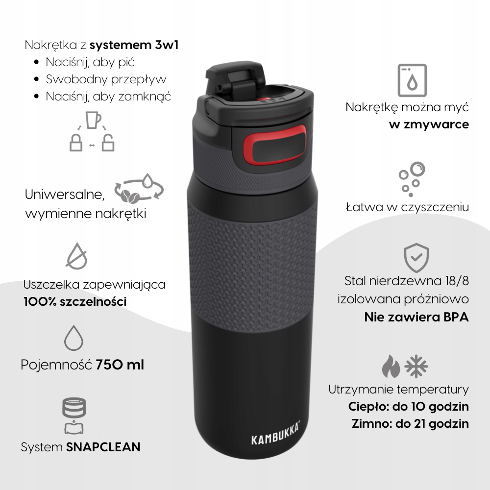 Вы ищете бутылку для многоразовой воды? Познакомьтесь с Элтоном, изолированным с 3 в 1 орехом с «push», «всегда открытыми» и «закрытыми», что позволяет пить так, как вам нравится. Вы боитесь, что бутылка протекает? Элтон не разочарует вас. Вы беспокоитесь, что ваш напиток согревается? Благодаря этой бутылке, ваши напитки останутся холодными в качестве льда до 21 часа - идеально подходит для следующей автомобильной поездки или отправиться на фестиваль! Технология SnapClean® делает бутылку простым в чистке, а ручка и силиконовое дно делают бутылку не перемещаться в одиночку и остается там, где вы хотите: под рукой.