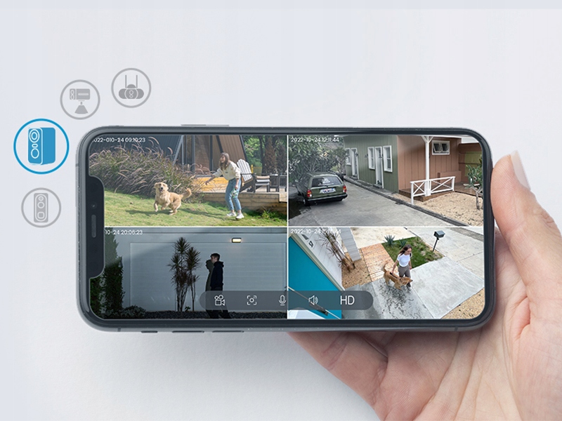 два -пути предупреждение от Intercom в режиме реального времени Даже если вас нет дома, вы можете получить доступ к камере в любое время и поместить через приложение, получать сообщения о тревоге и использовать функцию Intercom, чтобы предупредить злоумышленников. p> Мониторинг многих сцен h2>